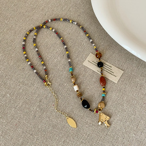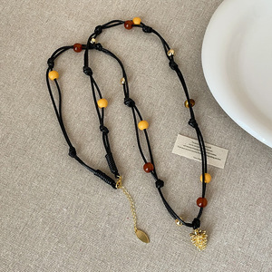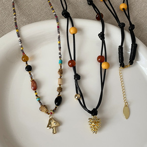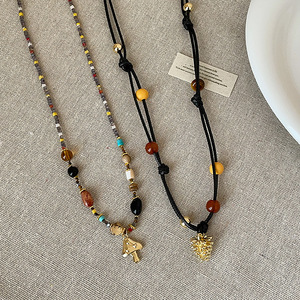 デザインキノコ松ぼっくり天然石ビーズネックレスレディースレトロライトラグジュアリーファッショントレンド多用途ネックレス鎖骨チェーン
