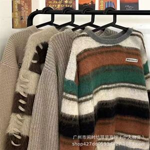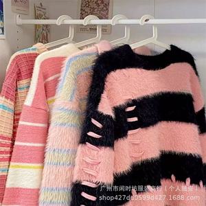 柔らかくワックスのような模造ミンクベルベットストライプコントラストカラーセーター女性のための 2025 秋と冬ルーズデザインニッチレイジースタイル針