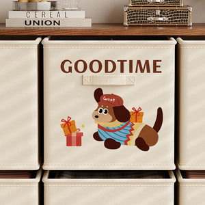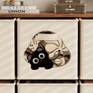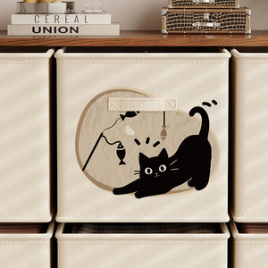 喵抱玻璃梦-麻感方盒收纳箱(本白