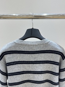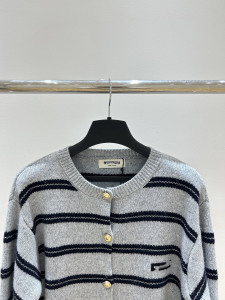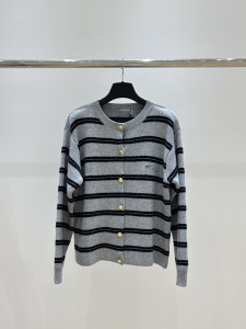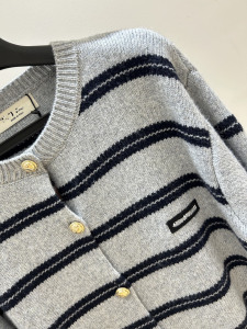南油女装24M家新款早秋休闲百搭纹圆领条纹羊毛针织长袖开衫女