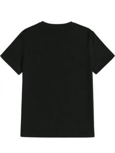 メンズカジュアルラウンドネックTシャツ、サイズプリント付き - ブラックグラフィックTシャツ、サマースタイル、ポリエステル混紡