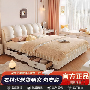 クリームクラウドモダンシンプルソフトバッグ収納フレンチベッドマスターベッドルームダブルベッド多機能ベッドユニバーサル