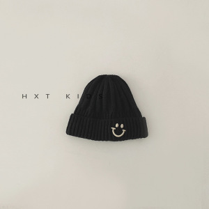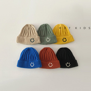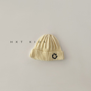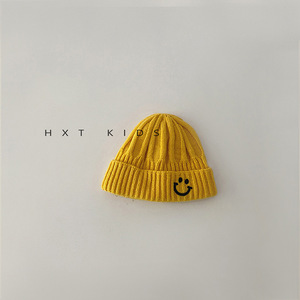 ins韩国笑脸儿童毛线帽秋冬季韩版简约男童女童宝宝冬天针织帽子