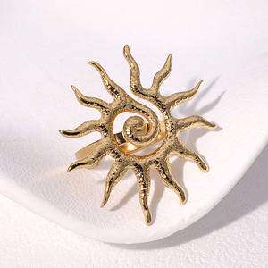 ヨーロッパとアメリカで売れ筋のステンレススチール製オープンサンリング 18K ゴールドメッキのパーソナライズされたレトロなファッションライト高級非退色ハンドジュエリー