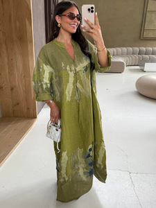 ファッションルーズカジュアルホリデースタイルプリント長袖ドレス 2025 クロスボーダーヨーロッパとアメリカンスタイルの夏の新ホットセール