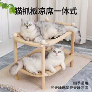 双层猫窝猫抓板一体剑麻垫藤编凉席不掉屑实木上下两层特大号猫床
