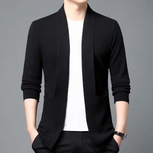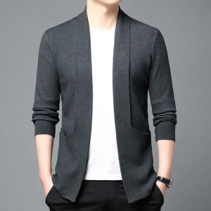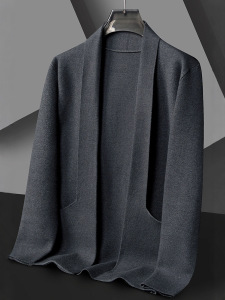 针织开衫男士披肩外套时尚2025春秋季抗起球夹克无扣开衫潮流毛衣
