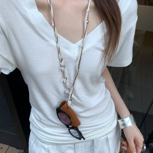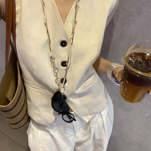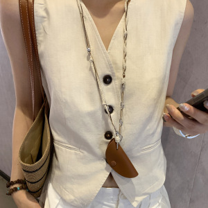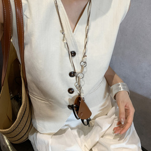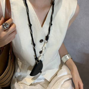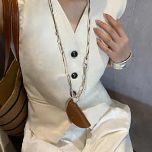 韩版高级感编织小皮夹吊坠长款项链女小众设计感毛衣链叠戴颈链潮
