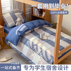 新款全棉宿舍床上三件套纯棉学生寝室床单人被套床笠被罩