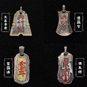 七尚国潮泰银镶嵌文昌帝清薇令紫薇讳张天师牌吊坠复古文化挂坠