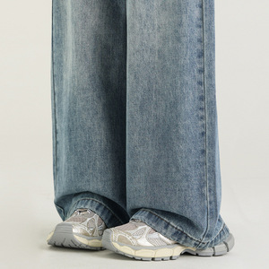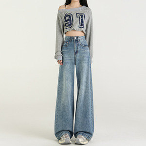 アメリカンデザインのレトロブルーワイドレッグジーンズ女性用夏の新しいルーズドレープライトカラーストレートレッグフロアレングスパンツ