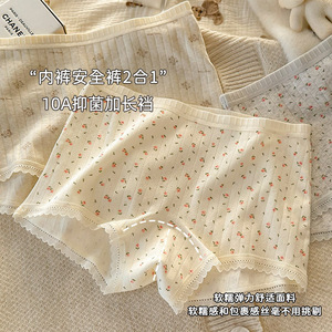 10A 抗菌綿拡張クロッチ安全パンツツーインワン露出防止レギンスミッドウエストレースボクサー下着女性用