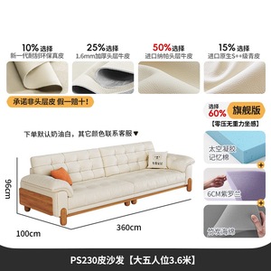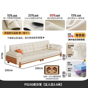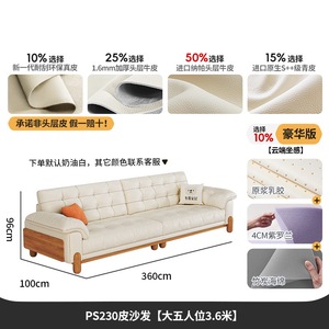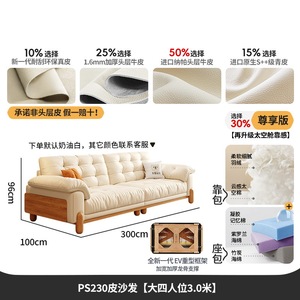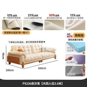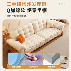 Tongyu ティーパフクラウドクリームログリビングルーム和風ストレート小型アパートメントマシュマロ無垢材レザーソファ