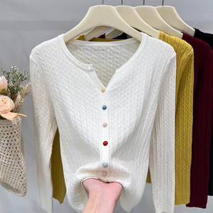 包芯纱秋冬新款麻花纹针织开衫女温柔风软糯休闲百搭毛衣休闲外套