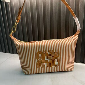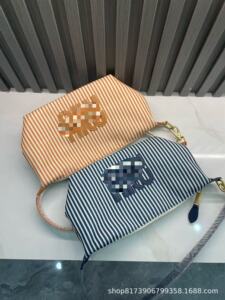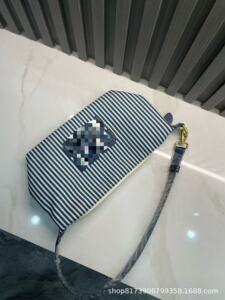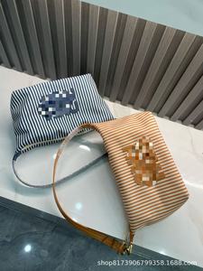 Miu缪家新款春季经典字母logo拼色条纹帆布饭盒包手提包单肩女包