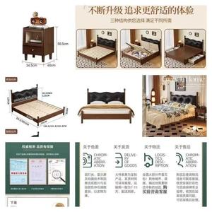 北欧中世スタイル無垢材ベッド 1.5 メートル小さなアパートモダンな 1.8 メートルダブルベッドフレンチレトロソフトパッケージマスターベッドルームシンプル