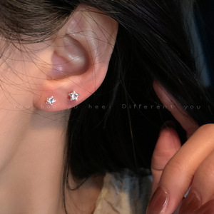 925银针精致锆石星星耳钉女睡觉免摘耳环养耳洞小众设计感耳饰品