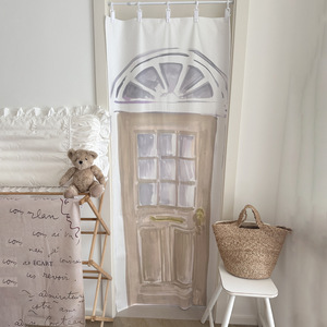 イン韓国風クリームイエロー漫画コーヒーデザート衣料品店クリエイティブホームソフト装飾アレンジメント生地ドアカーテン