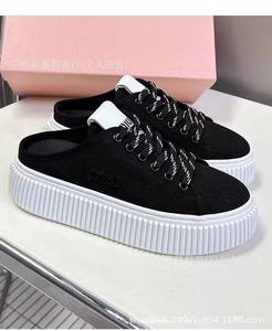 新款miu帆布厚底饼干半拖鞋女休闲运动牛仔穆勒板鞋包头小白鞋