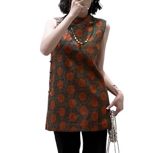 中式女装中国风橘色提花无袖衬衫中长款夏季斜襟盘扣唐装坎肩背心
