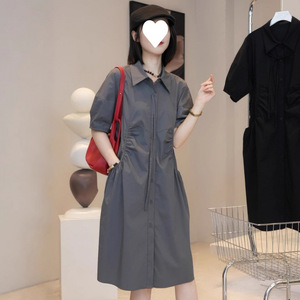 欧货设计感翻领短袖连衣裙女胖mm夏季大码宽松显瘦衬衫裙子240斤
