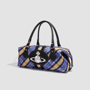 2025 トレンディホットガール中古ボウリングバッグレトロ土星チェック柄ショルダー脇の下バッグ大容量通勤トートバッグ