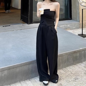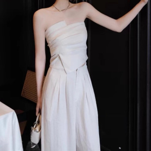 新しいファッション気質ライトラグジュアリーフェミニンスーツシリーズアプリコットチューブトップブラックチューブトップアプリコットスーツパンツ