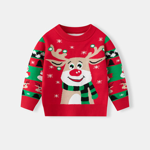 2025 新しい秋と冬の子供のクリスマス漫画ヘラジカセーター男の子と女の子のためのベビーアウターウェア底プルオーバーセーター