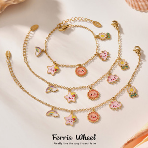 観覧車、かわいくて子供っぽい、オイルドリップ、太陽、星、雲、ネックレス、ブレスレット、アンクレット、チタン鋼子供用ジュエリーセット