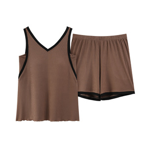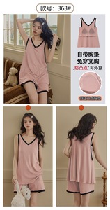 夏季凉感带胸垫睡衣女夏季冰丝螺纹 背心短裤休闲学生无袖家居服