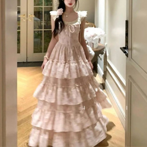 2025新款气质蕾丝小飞袖连衣裙女夏季高级感甜美收腰显瘦蛋糕裙子