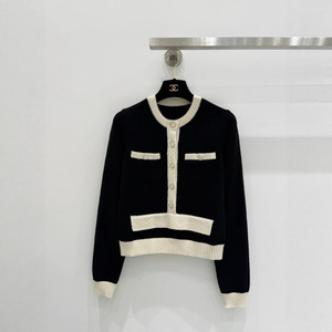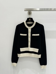 深圳南油高定25C新款小香风圆领刺绣羊毛扣针织衫女开衫短外套