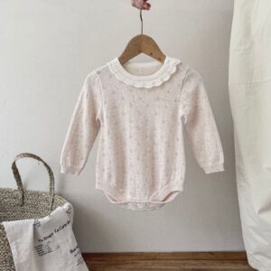 ins2025春夏秋婴童彩点棉花边领针织哈衣女宝宝纯棉连体三角爬服