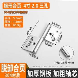 304不锈钢『2.0厚3孔』一4寸脱卸合页101mm