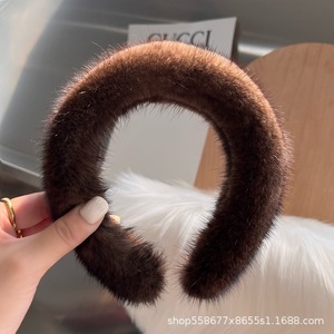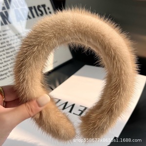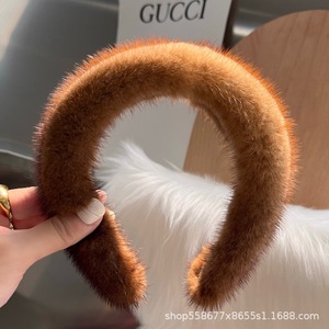 发箍真水貂毛洗脸毛毛发带宽边网红秋冬季皮草貂绒头饰纯色头箍女