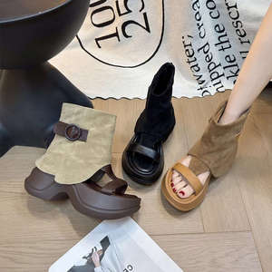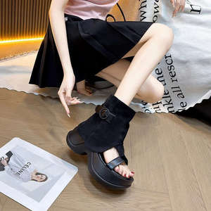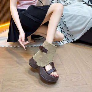 女性用厚底サンダル、2025年夏新作ショートパンツブーツ、レトロで万能な小柄なワンラインサンダル