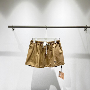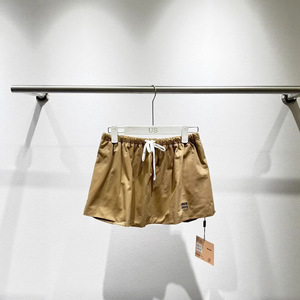 mi u 迷你抽绳篷篷短裙女少女风25夏季卡其色松紧腰叠穿单穿短裙