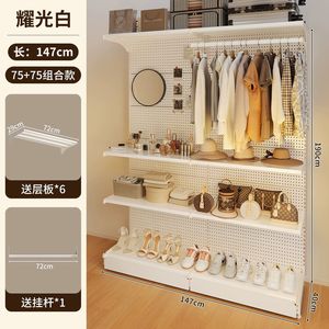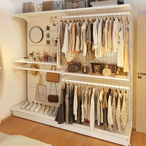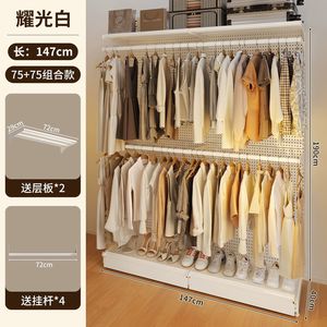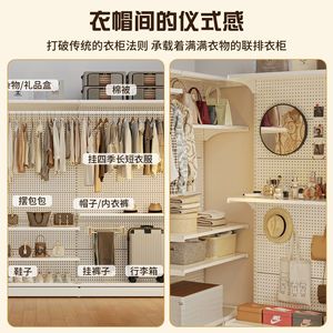 开放式衣架洞洞板置物架出租房落地金属衣柜卧室衣帽间简易衣柜