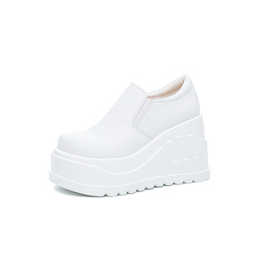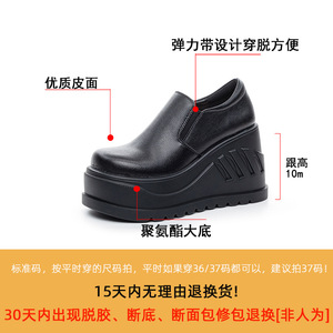 女性のためのスリッポン厚底ローファー 2025 新作春秋シングルシューズ 10 センチメートル高さカジュアルシューズウェッジヒール小さな革靴