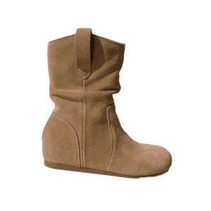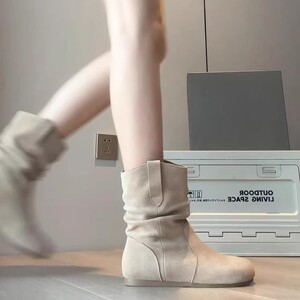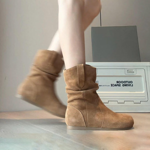 ソフトレザーバージョン〜ショートブーツレディースレトロウエスタンカウボーイブーツ2025秋新作プリーツパイルブーツチェルリースリムブーツ