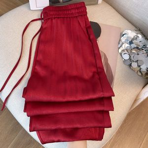 紫色阔腿裤女2025年夏季薄款新款国风印花凉凉裤高端缎面直筒裤子