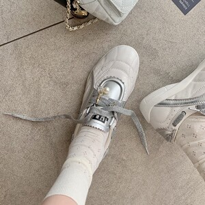 グレープママと同じスタイルが入荷しました~身長5cmアップ~厚底パールレースアップラウンドトゥカラーブロックカジュアルシューズ女性用フォレストシューズ