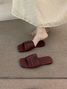フレンチイブニングレッドスリッポンレディースシューズアウターウェア2025夏休みビーチスカートサンダルサンダル