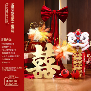 ライオンウェディングルームレイアウトセット結婚式ゴールデンハッピーワード男性と女性の寝室新しい家のカーテン蝶結婚式の装飾