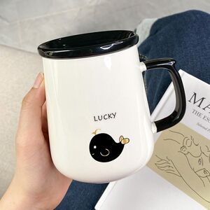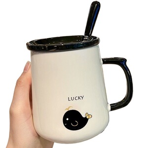 インターネット有名人マグカップ蓋付きスプーンカップルカップセラミック女の子かわいいクリエイティブホームオフィスコーヒーカップ男性用