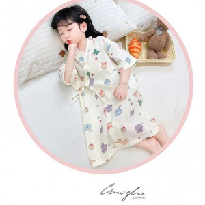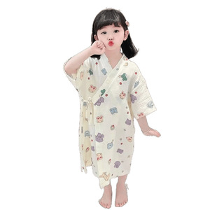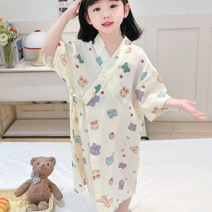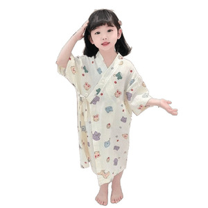 *夏天爆款卡通斜开衫儿童睡裙七分袖可爱宝宝风半浴袍5天内发货