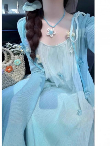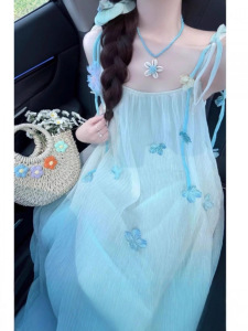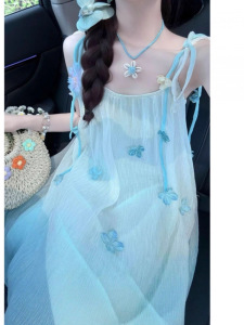 YX路68号院内 小蓝&089渐变蓝吊带裙