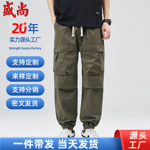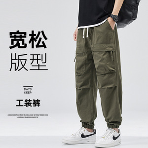 春と秋の男性用純綿カジュアルパンツ、新しいカジュアルスポーツレギンスオーバーオール、多用途の大きいサイズのルーズロングパンツ