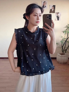 2025夏季新款韩版木耳边甜美背心无袖衬衫女宽松显瘦百搭减龄上衣