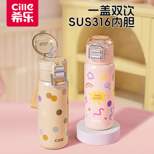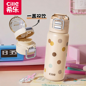 希乐保温杯新款高颜值可爱风大容量不锈钢水杯学生双饮便携外出杯